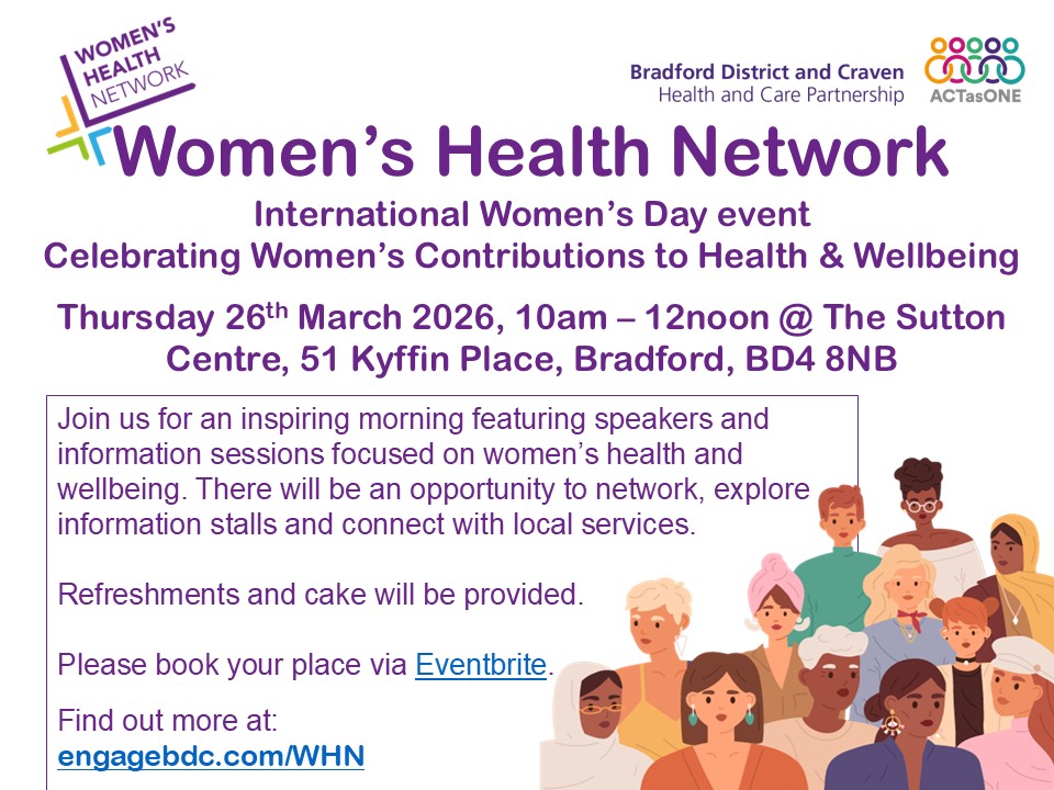 The Bradford District and Craven Women's Health Network is a collective who strive to improve the health and wellbeing of women and their families through effective partnership working.